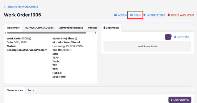 Logbook records can be created from the aircraft profile, on the fly or from a work order. If created from from a workorder that is tied to an aircraft profile, that LSR will also be tied to the aircraft. All LSRs can be found under the lefthand navigation menu under "Logbook Service Records"