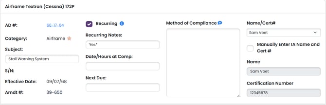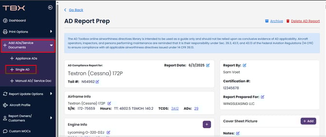 Simply navigate to the left navbar and select "Add ADs/Service Documents" and then "Add Single AD":