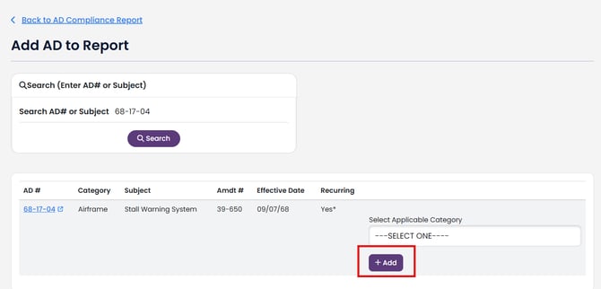 There are times when we may want to add ADs for other variants, or certain ADs that are out there to prove that we looked into them. This is easy to do from any AD Report Prep page.