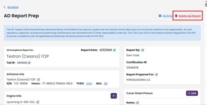 You may want to consider archiving an AD Report before deleting one. If you must delete a report, we offer that option in the top-right corner of the AD Report Prep page.