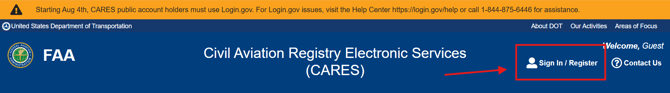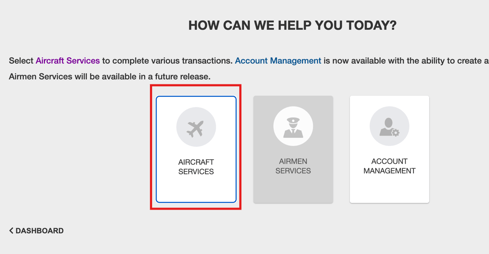 Once you have completed registration and logged in to CARES, click "Aircraft Services" on your CARES dashboard.