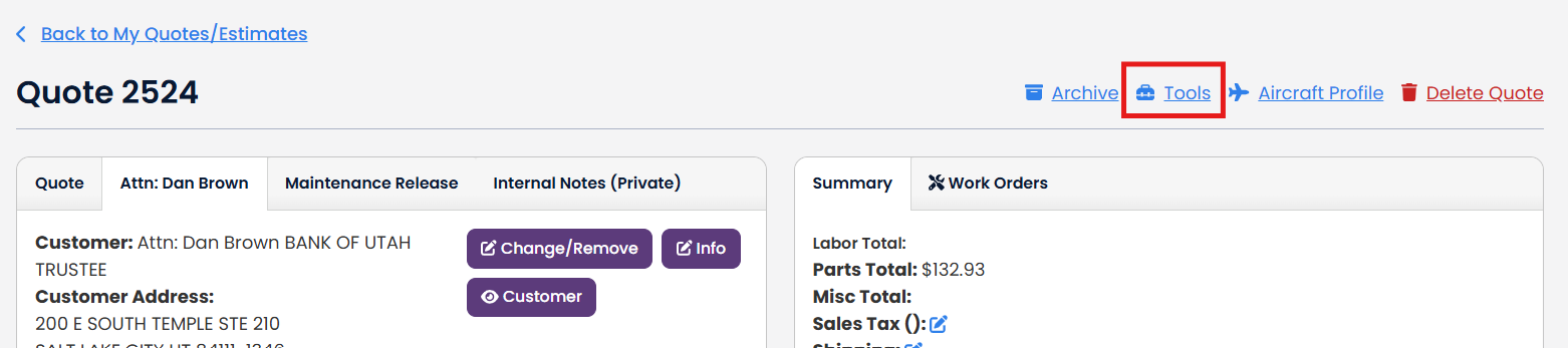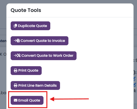 Click "Email Quote" (button will say "Estimate" if it is an estimate) button in the Tools modal.