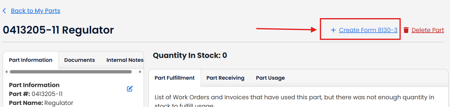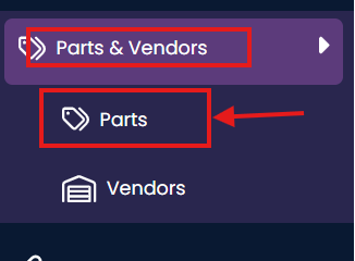 To create a FAA Form 8130-3 directly from a part saved in TBX, click on Parts & Vendor and then Parts on the left-hand navigation bar.