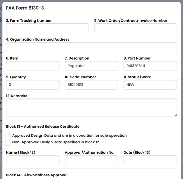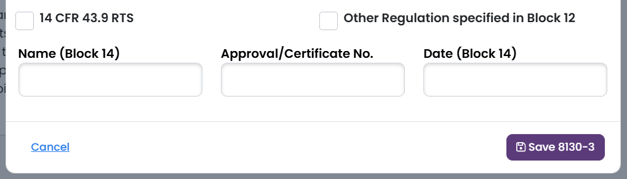 Once you have completed the fields you want to print to the Form 8130-3 form, click Save 8130-3.