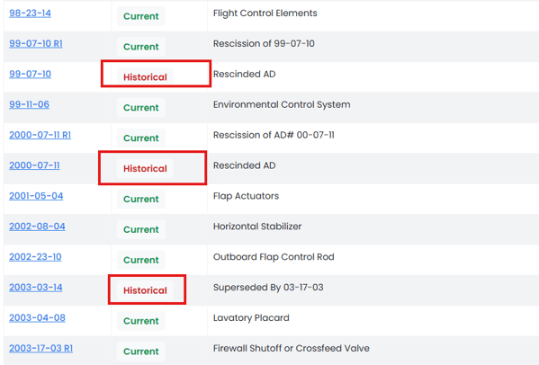 What are historical or superseded ADs?