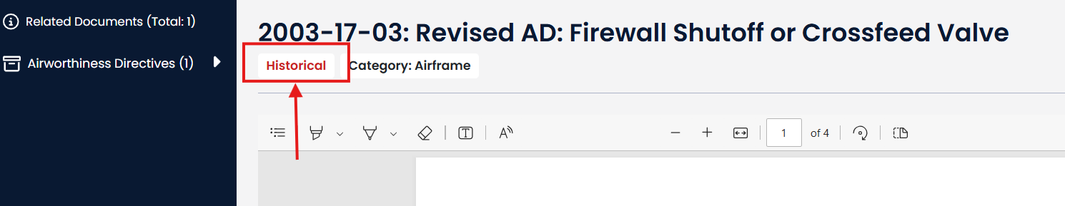 When doing an AD search, historical ADs will be in the AD list.
