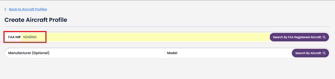 2. Search by N-Number OR by Make or Model. Searching by the N-Number is recommended when possible as it will import information such as the owner and serial number of the aircraft.