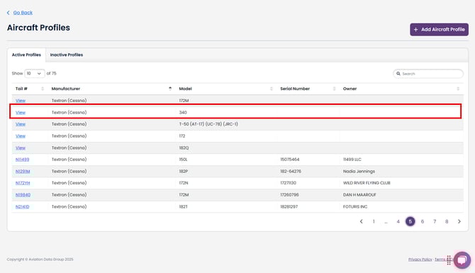 Next is a popup window, you can verify the owner information. The owner will be added to your customers unless you uncheck the checkbox. Next click the "+ New Profile" button. You will now have an aircraft profile.