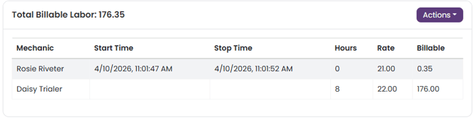 In the same tab with your Labor Cards, there will be a "Total Billable Labor" table listing all Distinct Clock Ins/Outs, Manual Entries, and Flat Rates.