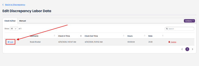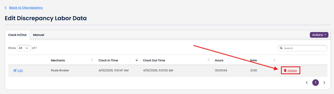 - Note: You can clock in and out of the same Discrepancy multiple times. The combined total time will be shown