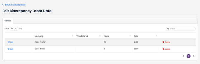 - Note: There can only be one manual rate per Discrepancy. You can update the manual by changing the number and clicking save