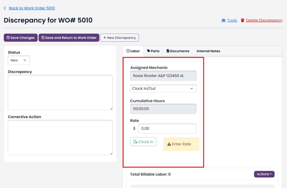- This feature allows you to keep track of the real-time hours that your mechanics are working on each discrepancy