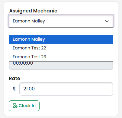 The Assigned Mechanic dropdown will list all users on your account.