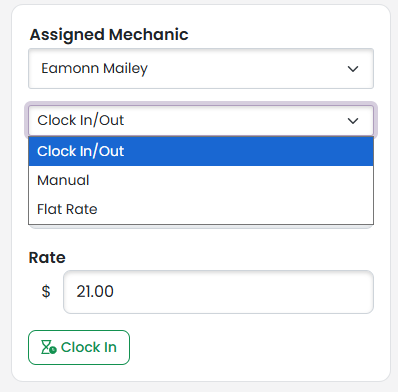 Clock In/Out, Manual Entry, and Flat Labor Rate: