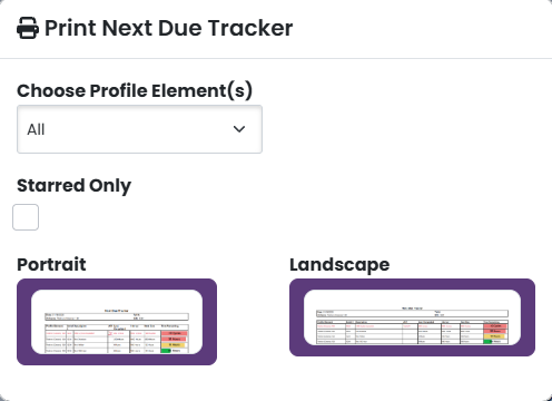 - Select what Profile Elements you want to include and then select Portrait or Landscape