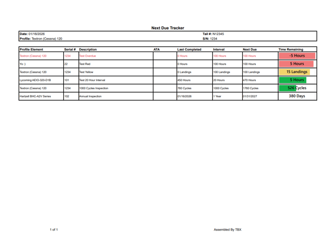 - Your Next Due Tracker's Time Remaining is now updated to reflect the current Aircraft Profile Times