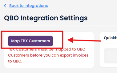 To map your TBX Customers to your Quickbooks Online Customers, go to the QBO Settings page: