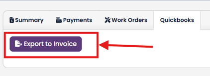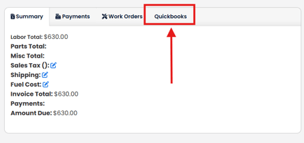 To export an individual invoice, view the invoice you want to export. Click on the Quickbooks tab in your invoice.