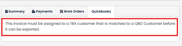 If you invoice is not associated with TBX Customer that has been mapped to your QBO, you will not be able to export your invoices.