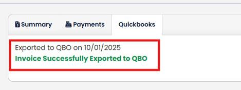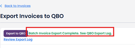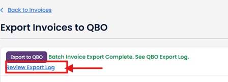 You may also review the QBO Map and Export Log for specific details about exported invoices.