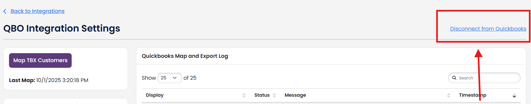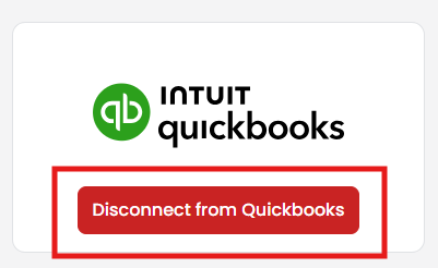 Click the red "Disconnect from Quickbooks" button on either the Integrations page or