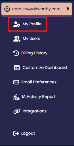 Scroll to the bottom of the Left Nav bar and click on your Email Address. Then click on "My Profile"