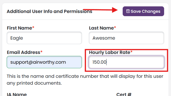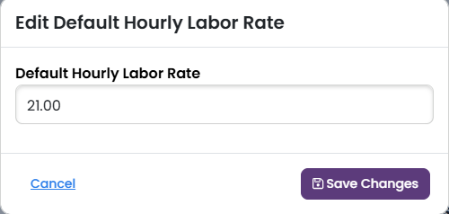 Enter "Default Hourly Labor Rate" and click "Save Changes"