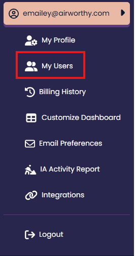 Scroll to the bottom of the Left Nav Bar and click on your Email Address. Click "My Users"