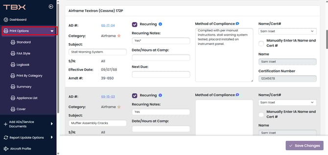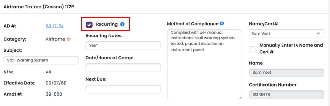 To view a report with only recurring ADs, simply click on the "Show Recurring Only" checkbox in the AD Report Prep Page: